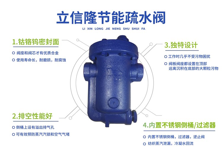 倒桶式疏水阀怎么卖?立信隆厂家直销倒吊桶式疏水阀内置止回阀过滤器,开放式不锈钢吊桶,更耐水锤。操作也可排放不凝气体,有效阻挡蒸汽,节约减排。