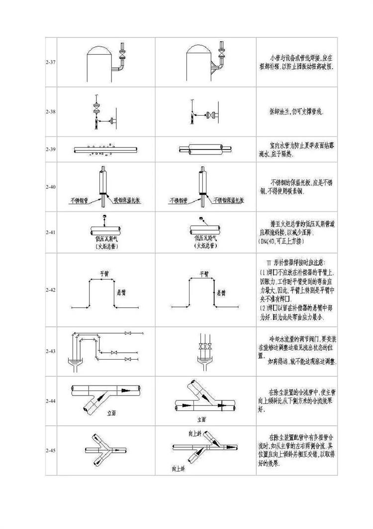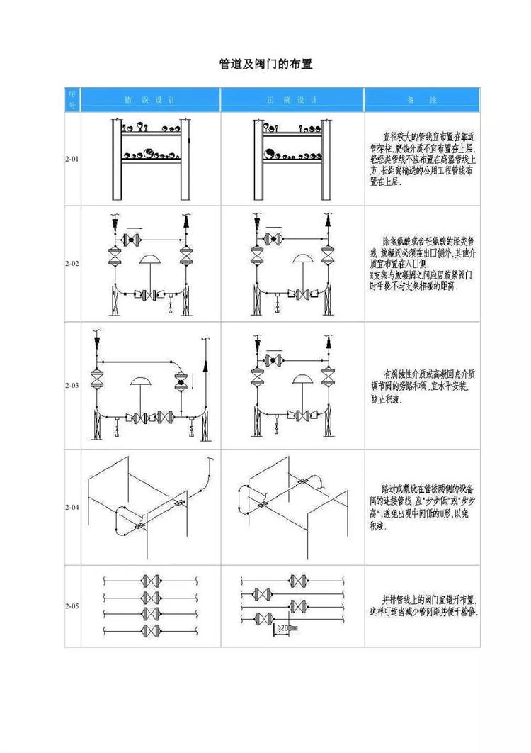 在配管设计中经常由于设计人员的疏忽和经验不足缺乏认真考虑造成管道布置不合理,操作检修不便,外表不美观。为提高设计质量,减少常识性错误的发生,以节省设计,校对,审核的时间,现将管道及阀门的布置设计常见错误及正确形式编辑成图表,共同分享。