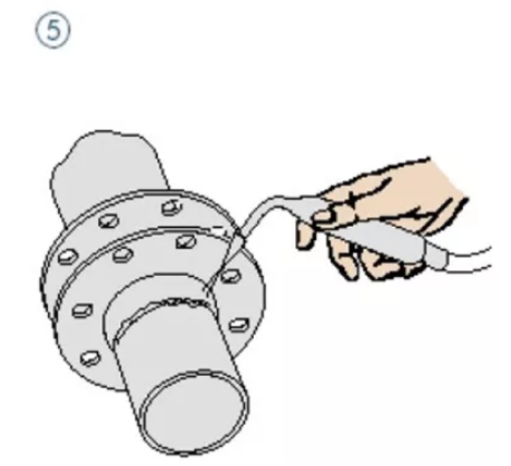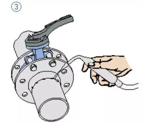6、待焊口冷却后再安装阀门。保证阀门在法兰中有足够活动空间以防止阀门被损坏,并保证阀板有一定的开度;