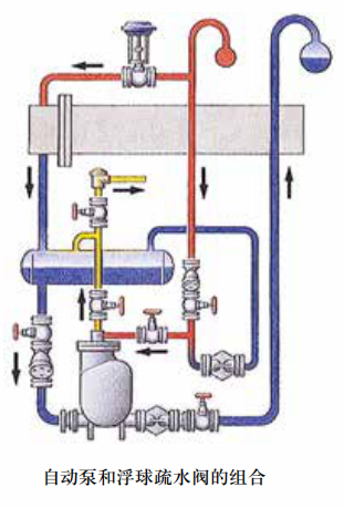 在有温度控制以及冷凝水回收的应用中,往往还要求使用破真空器,机械泵与疏水阀的组合,或自动疏水阀泵,才能正确的将冷凝水排出。