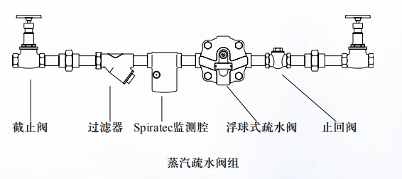 2、对于非直接排向大气的系统,在疏水阀的上游应安装Spiratec检测装置以便于监测和及时发现疏水阀失灵或设备积水情况。有些情况下在疏水阀下游安装观视镜来代替Spiratec检测装置。如观视镜应安装于离喷排式疏水阀(如热动力疏水阀)下游至少一米处。