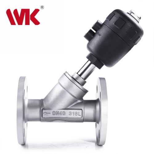 2、容易安装:气动头可旋转360度??煞奖愕匕沧耙坏蕉鱿尬豢亍?br /> 3、WK气动法兰角座阀先进的气动控制器:加厚工程塑料外壳,安全可靠。低磨损的活塞结构,容量大而低耗气量。内部元件自润滑,免维护