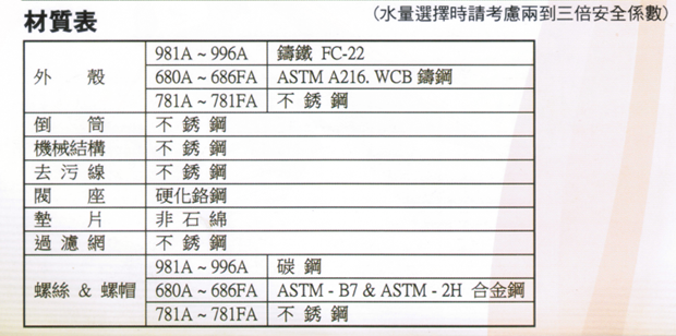 ● 零件探用不锈钢及硬化铬钢阀座,耐磨抗蚀。