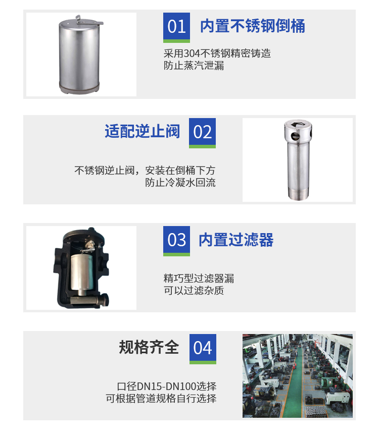 WK倒桶式疏水阀内置不锈钢倒桶防止蒸汽泄漏,适配逆止阀,过滤器可以清晰过滤杂质不生锈。