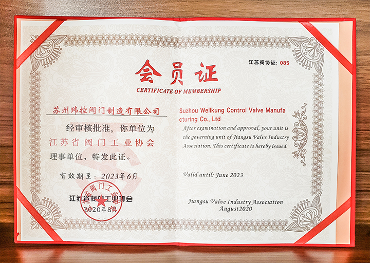 2020年8月,苏州玮控阀门制造有限公司正式升级,成为江苏阀门工业协会理事单位,此次升级,代表着江苏阀协对,苏州玮控阀门制造有限公司企业单位正规,企业管理规范,以及产品质量稳定的认可。